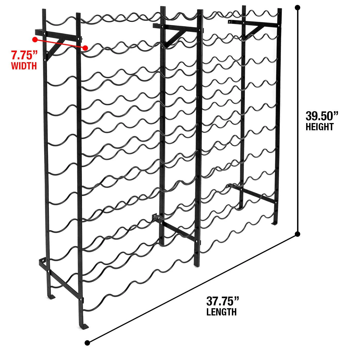 - The rack is designed to securely fit wine bottles with the maximum bottom diameter of up to 2.75″ (7 cm), ensuring stability and compatibility with most standard wine bottles.