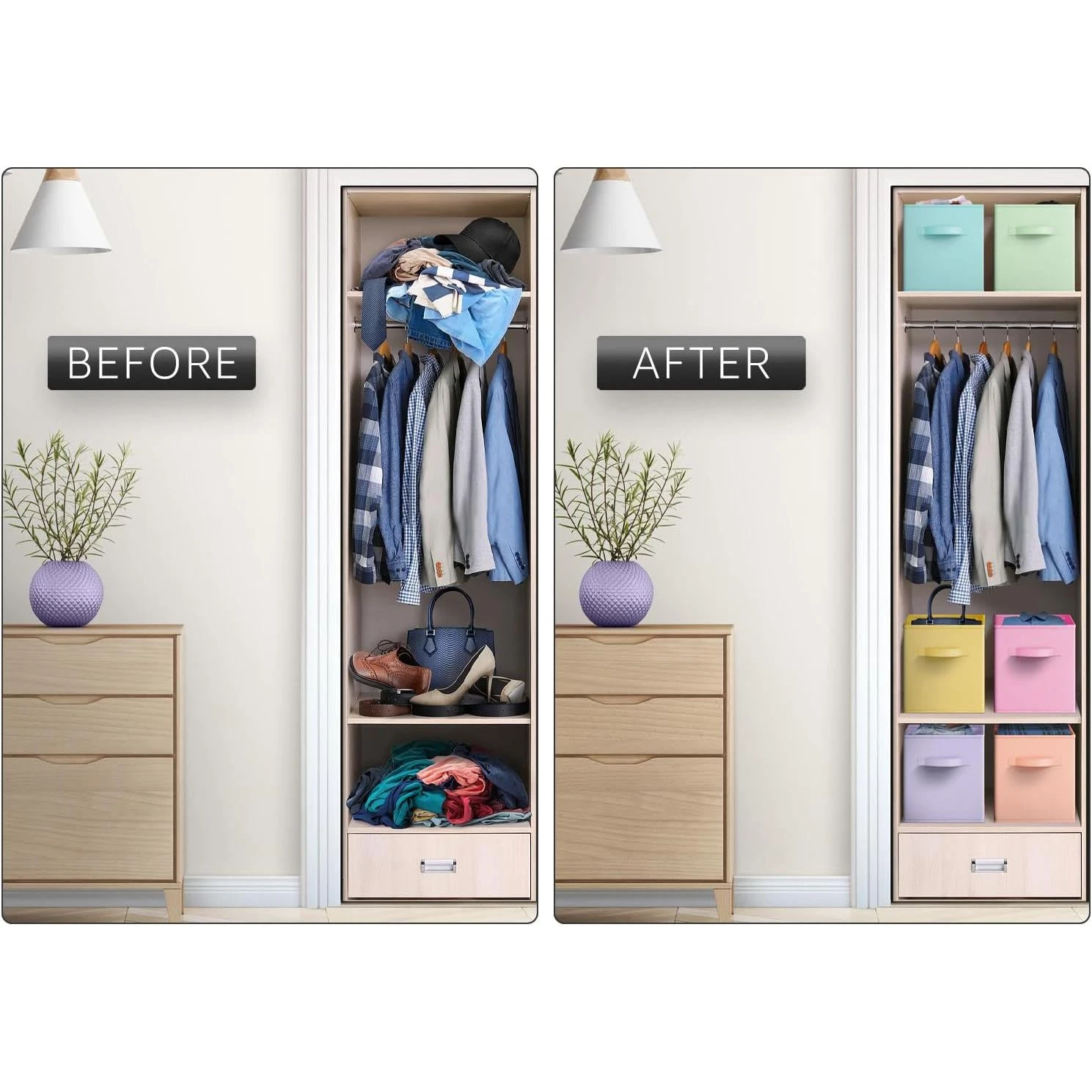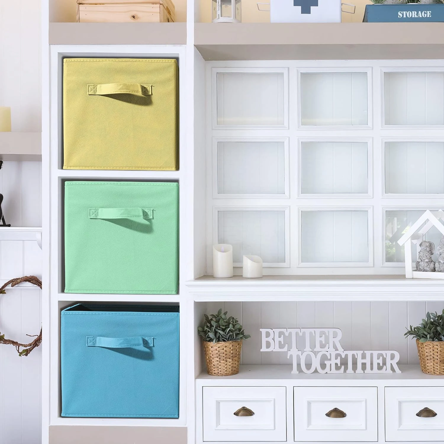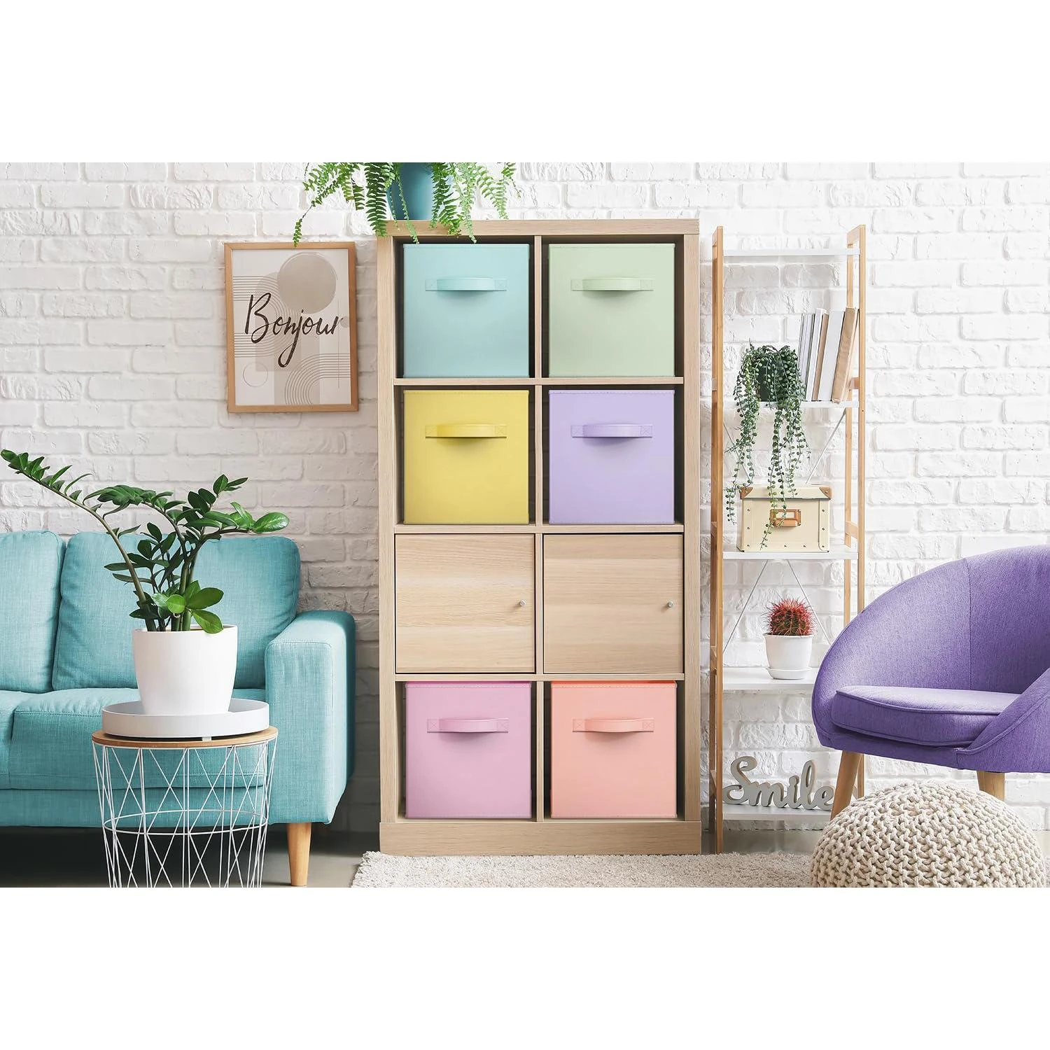 Tired of clutter? Tidy up with our pastel storage bins! Whether for storage or style, this set of six cubes come in variety of colors to keep everyone organized. Simply store toys, clothes, blankets, and knick-knacks from around the home. These bins fit most shelf organizer cubbies and look great in your kid’s room, living room, or laundry area. The built-in front handle makes it easy to grab and carry. When not in use, fold flat for storage.