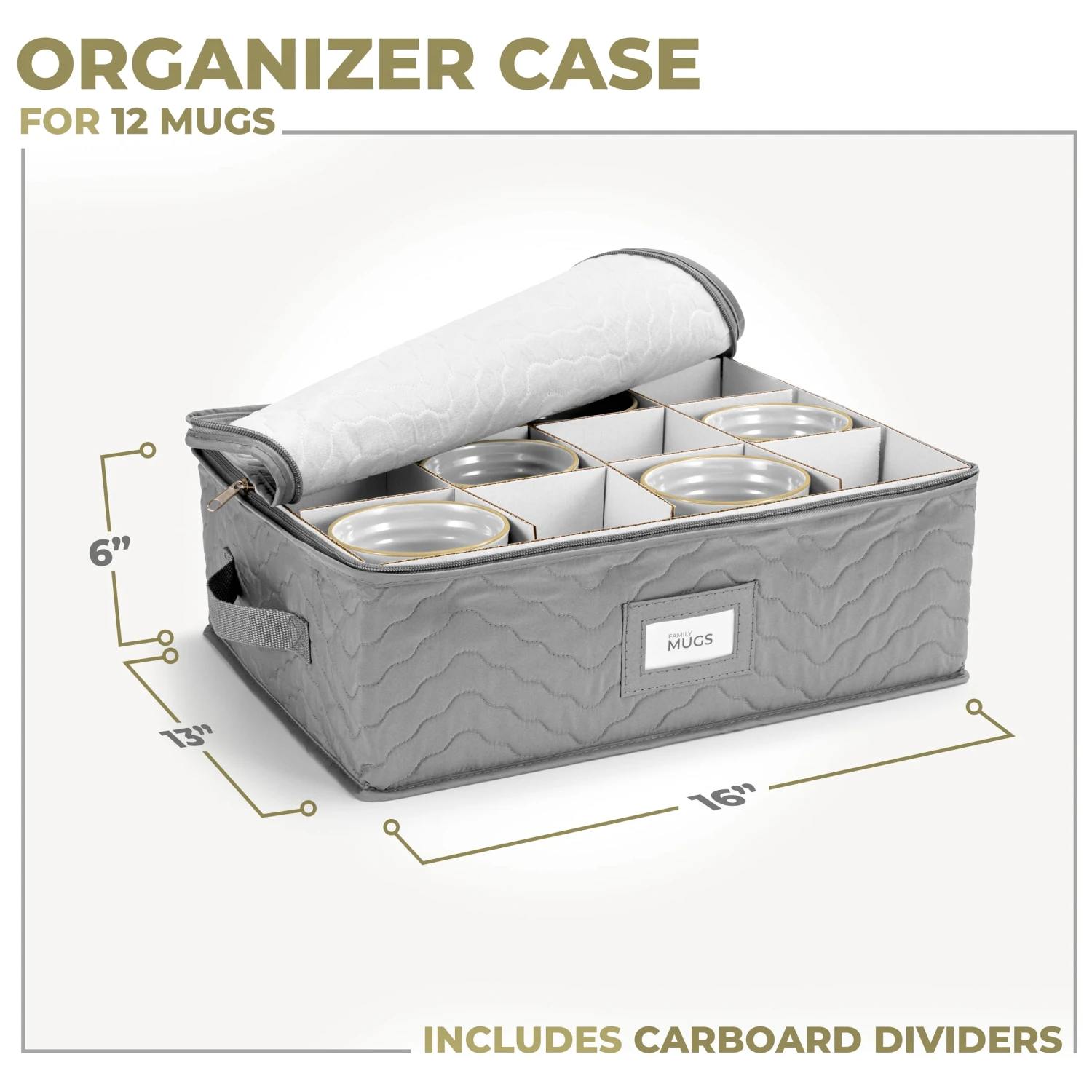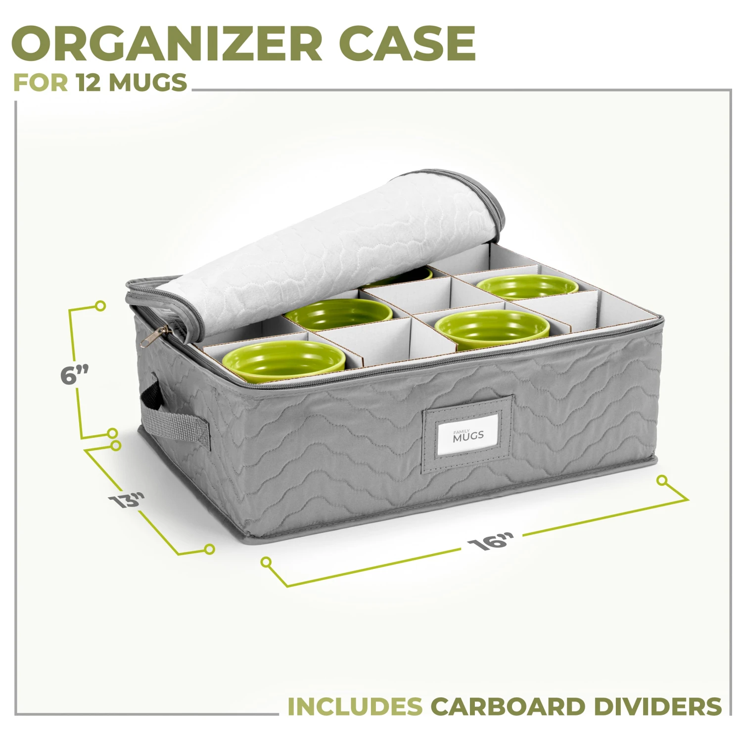 - Mug case measures approximately 13″ L x 16″ W x 6″ H