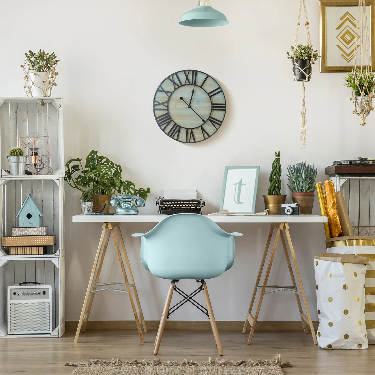 - Crafted of MDF wood with black metal hands