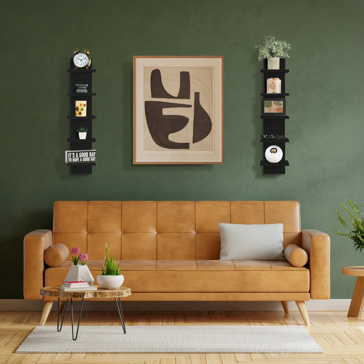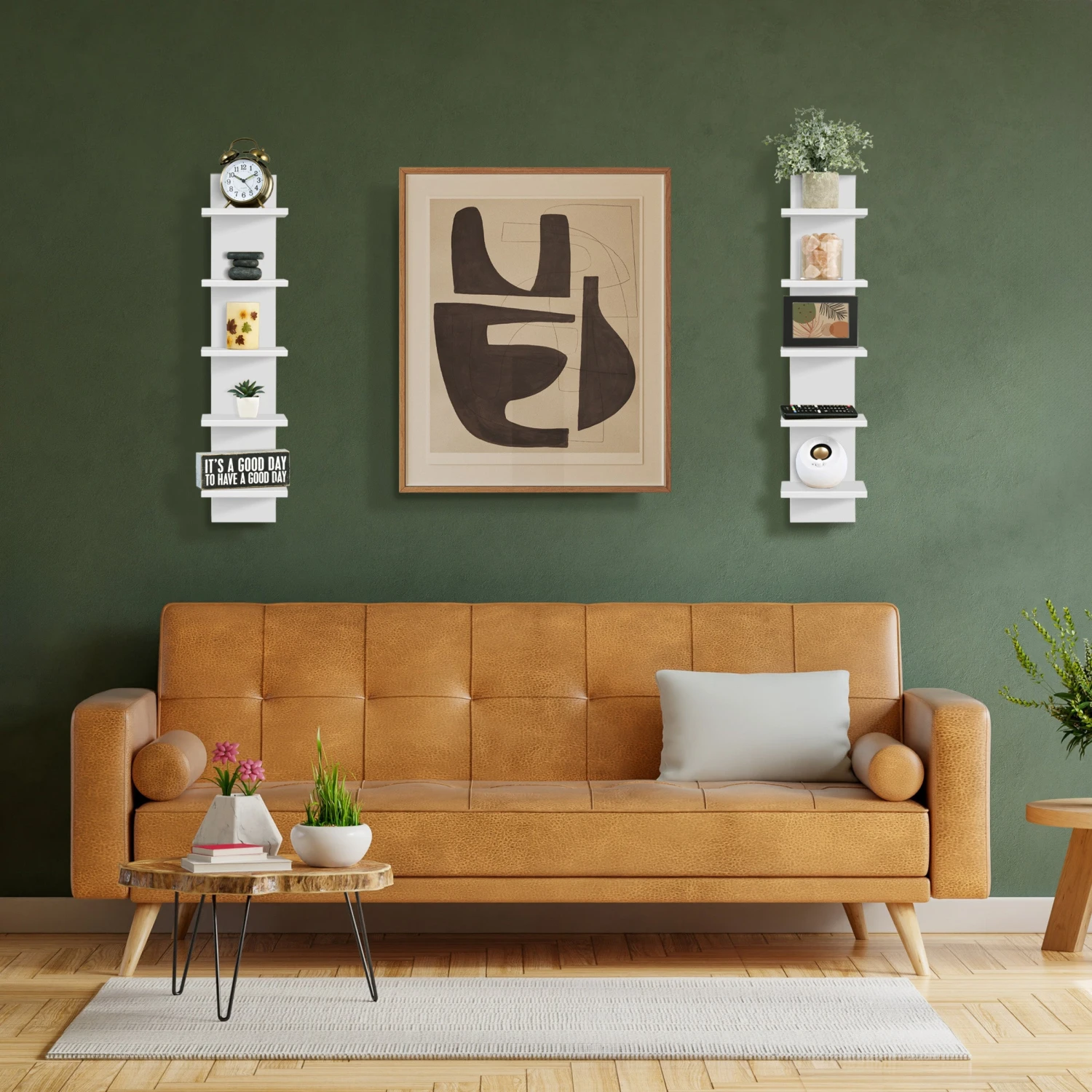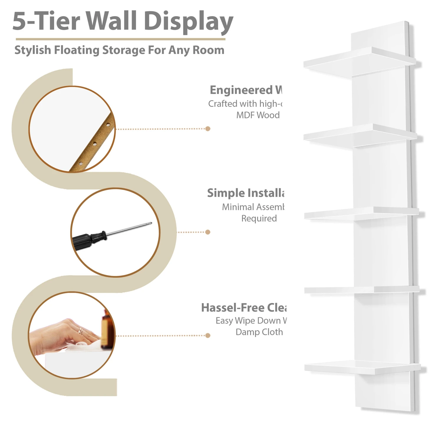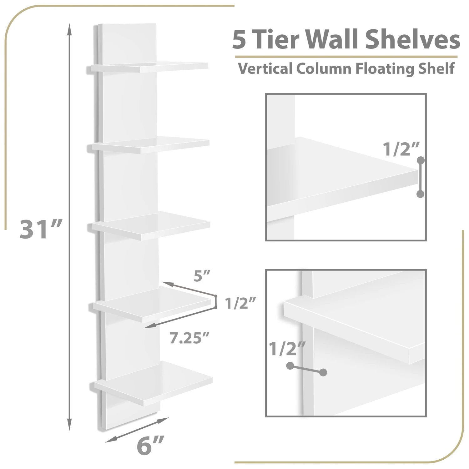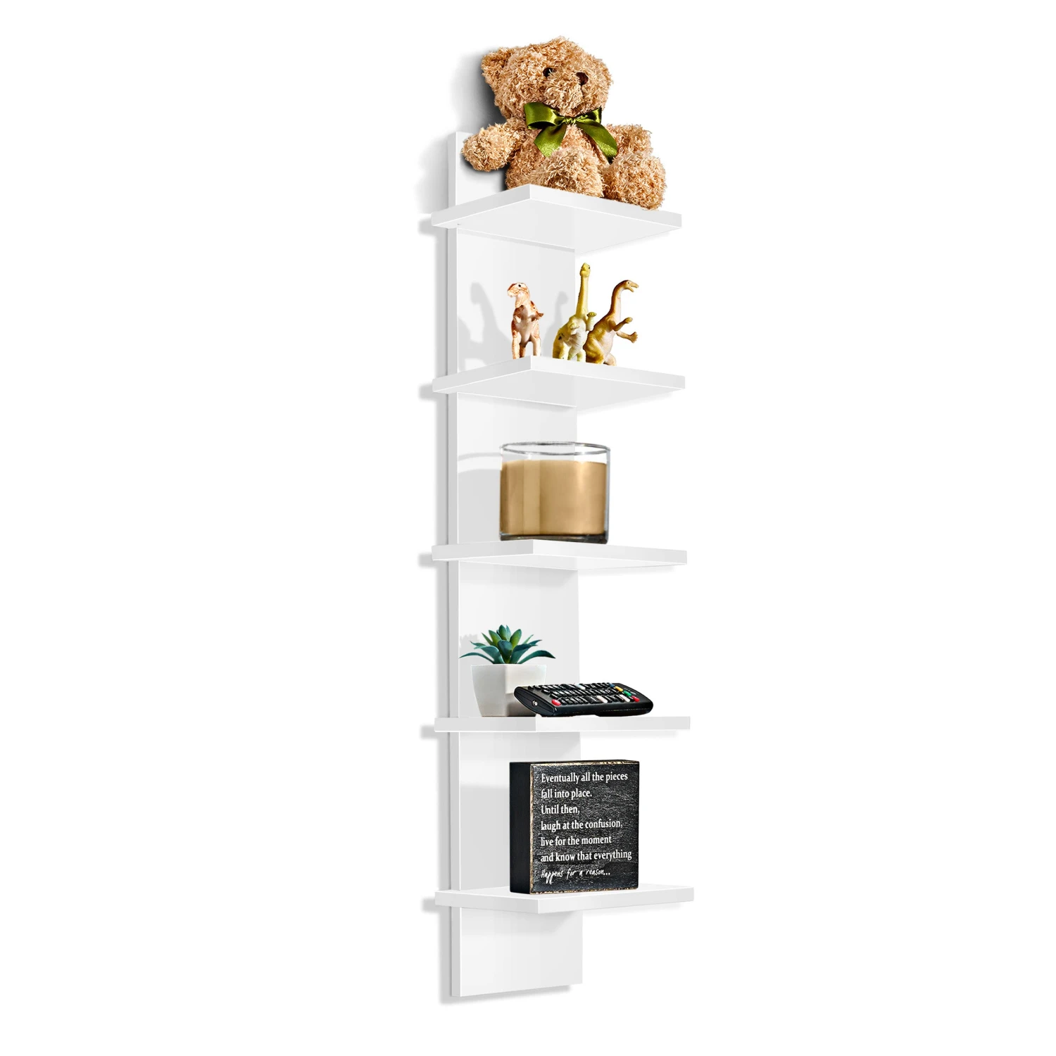 The Sorbus Corner Wall Shelf is a floating vertical wall shelf unit ideal for showcasing your favorite books and keepsakes in any space. This storage organizer has five square shelves and is designed to maximize space and elevate blank wall areas. Elegant Design: Upgrade your home decor with these wall bookshelf bedroom shelves. Its contemporary tower design adds both style and practical storage to your home.