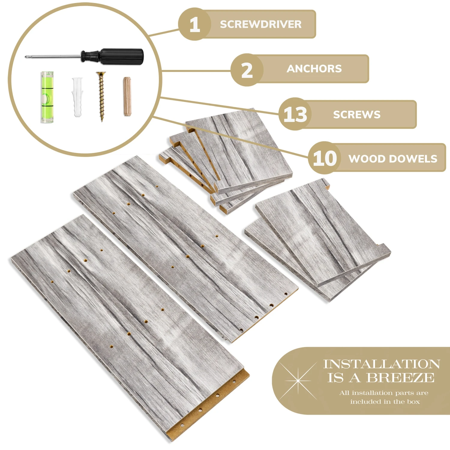 - Minimal assembly required, these shelves for wall storage can easily be mounted to any wall, offering a sleek floating appearance