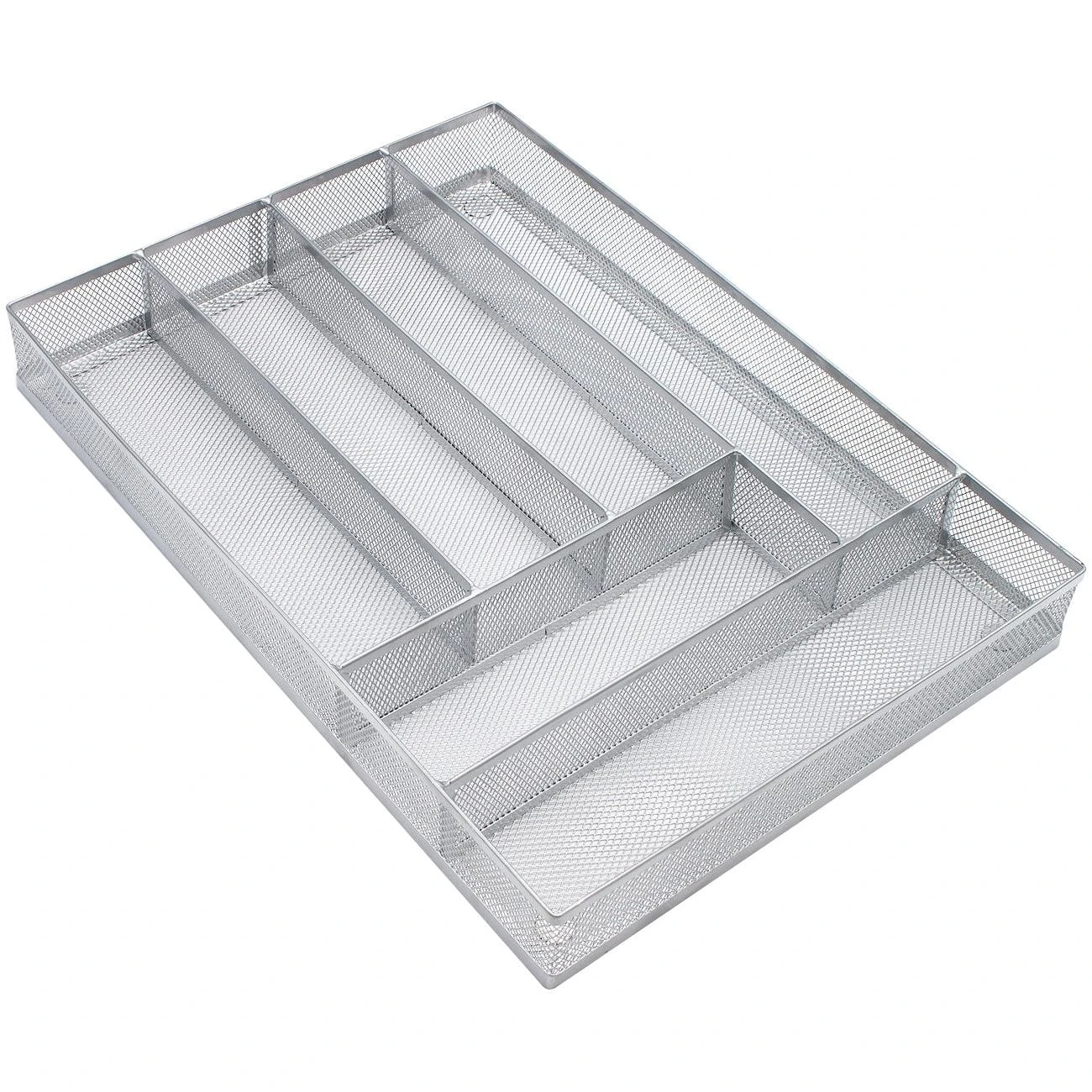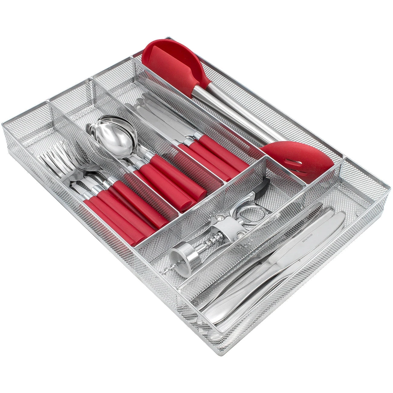 Tired of overflowing kitchen drawers? Keep your kitchen tools neatly arranged with the Sorbus® Cutlery Tray Organizer! This non-slip cutlery tray features six divided sections for a variety of silverware and serving utensils. The shorter sections are great for forks, knives, spoons, and more while the longer sections fit oversized tools like spatulas, whisks, and rolling pins. From beginner cook to gourmet chef, this tray keeps drawers organized and ready for the next meal. For multi-purpose use, slide this mesh tray inside desk or bathroom counter drawers for office supplies and bath toiletries. With divided sections, you’ll avoid the common clutter and see everything at a glance.