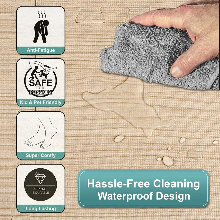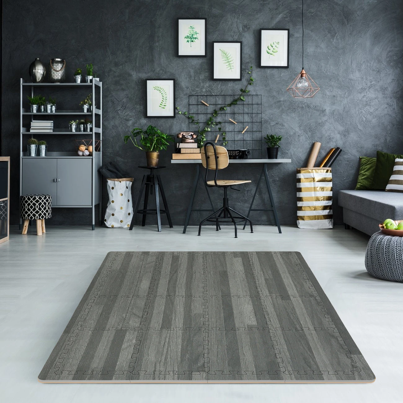 No more rugs to clean or cold hard floors! Enhance the look and comfort of your floors with the Sorbus Interlocking Floor Mat. This set features foam tile pieces to soften your space with the look of classic faux wood flooring. This mat not only protects from floor damage but reduces strain on your feet while standing. It’s a great option for kids, senior living, or anyone seeking cushioned padding with the realistic look of hardwood floors. Whether you’re creating a home office, play area, or tradeshow booth, these foam mat tiles are incredibly versatile and multi-purpose. Install in specific areas or wall-to-wall to maximize space in your home or business. For a more personalized space, mix and match with other wood grain tile colors by Sorbus. Each 12″ x 12″ interlocking piece is lightweight, portable and easy to assemble with a seamless look.