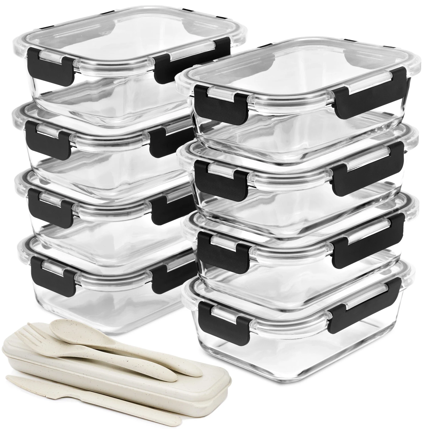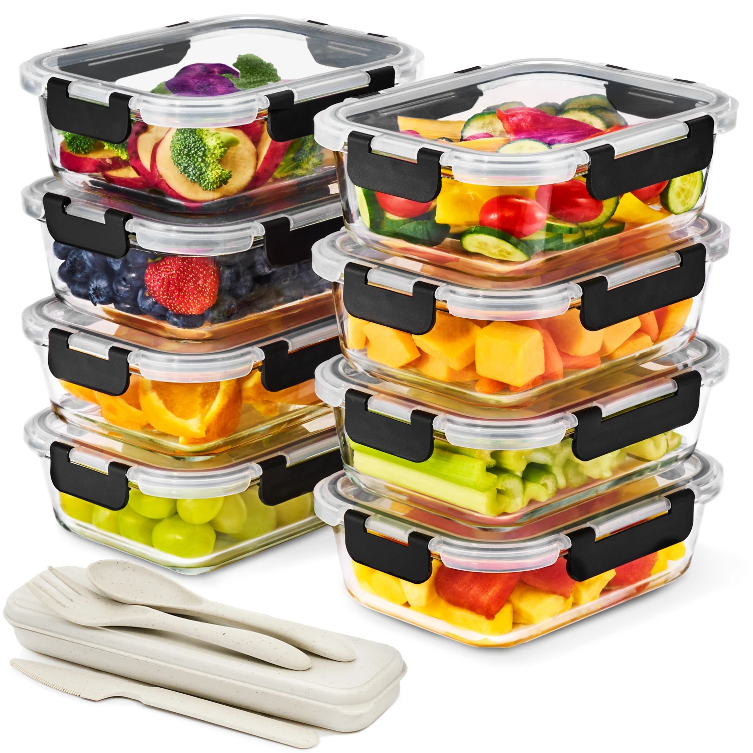 - Glass Meal Prep Containers with Lids: These airtight food storage containers are ideal for storing prepped meals, leftovers, chopped fruits and veggies, snacks, and more making kitchen storage convenient.