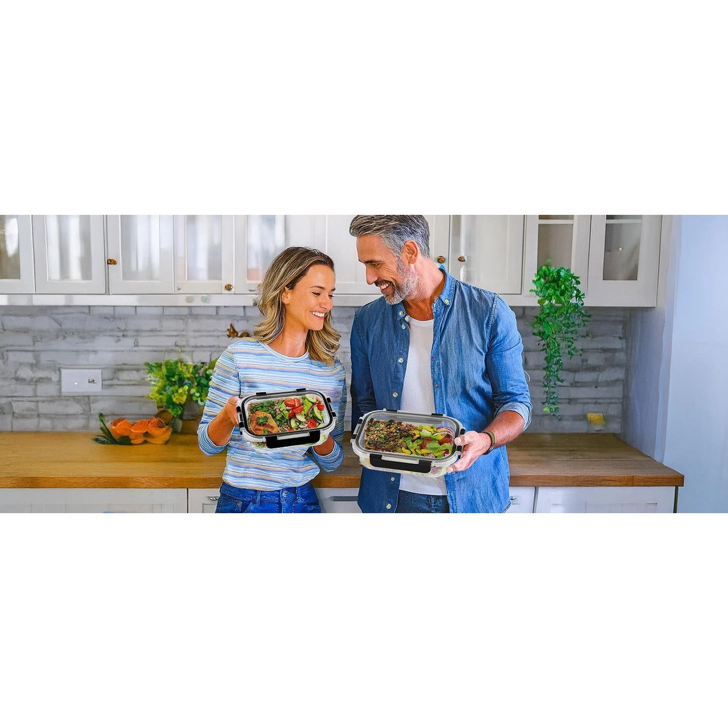 - Keeps Food Fresh and Secure: Each storage container for food features a four-sided locking lid with an airtight silicone seal to preserve freshness and prevent leaks. Glass containers for food storage stack easily in the refrigerator, freezer, or cabinet.
