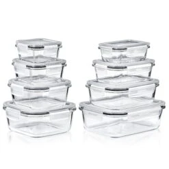 Glass Meal Prep Containers Airtight Lids Mix Shape (Set Of 8)